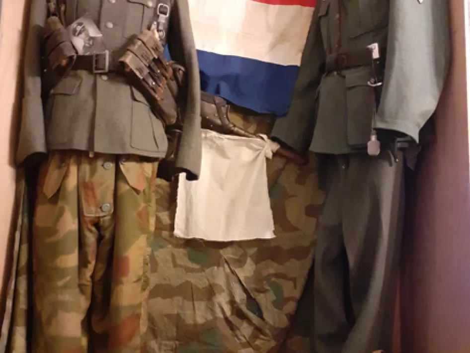 In het Vensterbankmuseum van Ruud en Tim ziet U onder andere een leutenant in zumpftarn met tassen. Artillerie, rechts daarvan een obergefreuter panzer abwehr erzats abteilung 4.deg Beroep Funker.